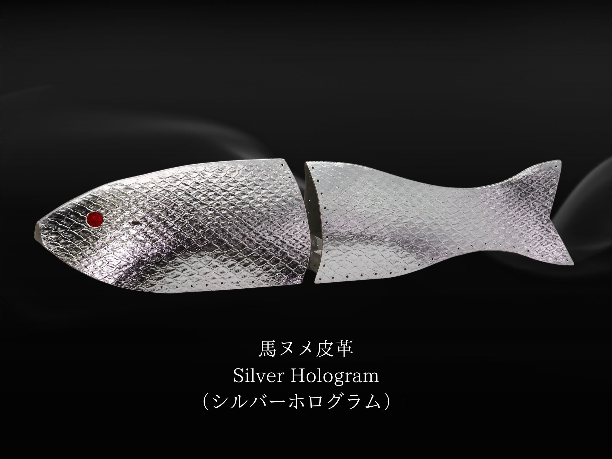 その馬ヌメ皮革に鱗模様の型押しを行い、箔貼り加工を行なった